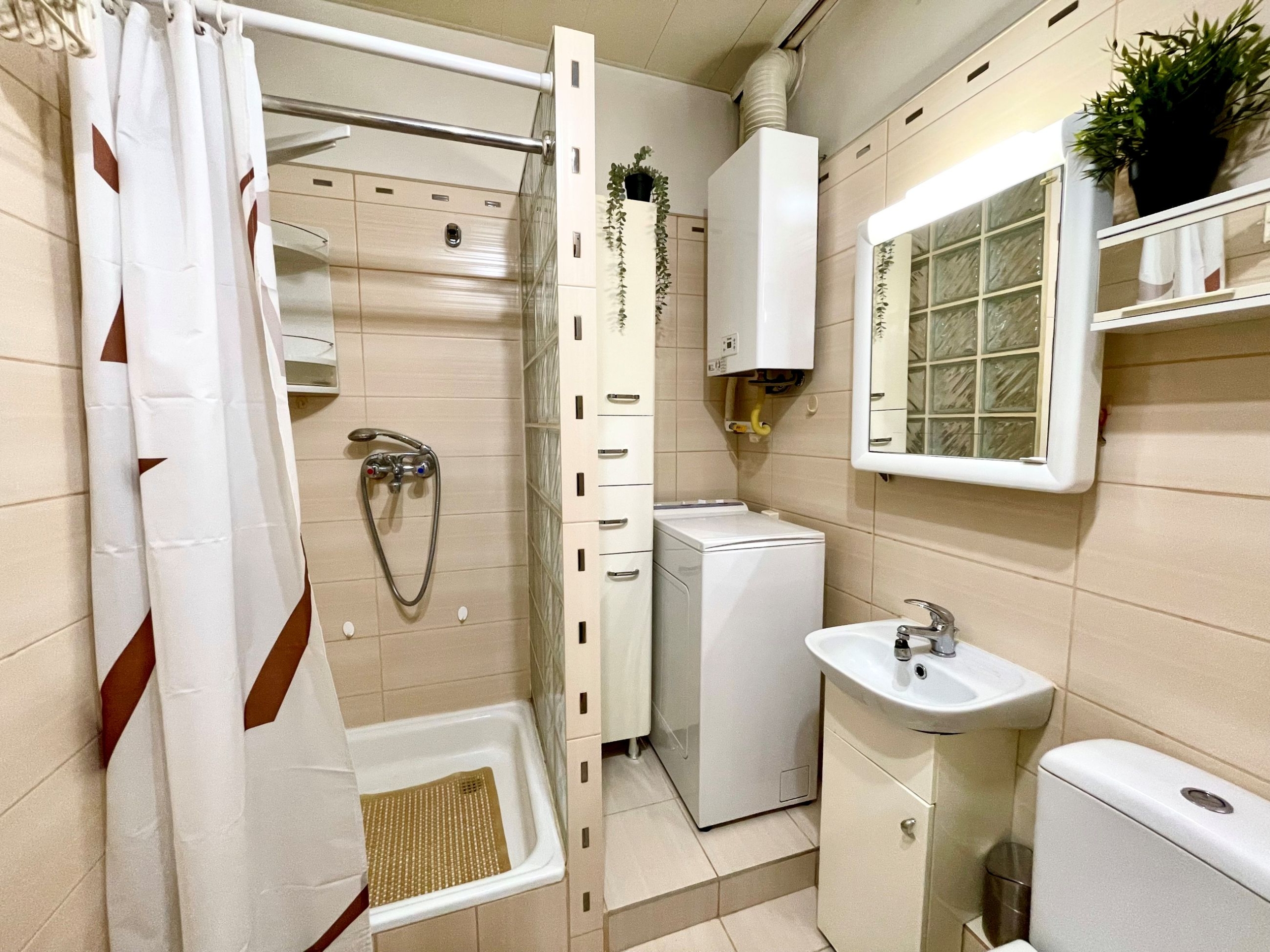 To przytulne mieszkanie o powierzchni 45,60 m² znajduje się na siódmym piętrze w dziesięciopiętrowym bloku z windą.