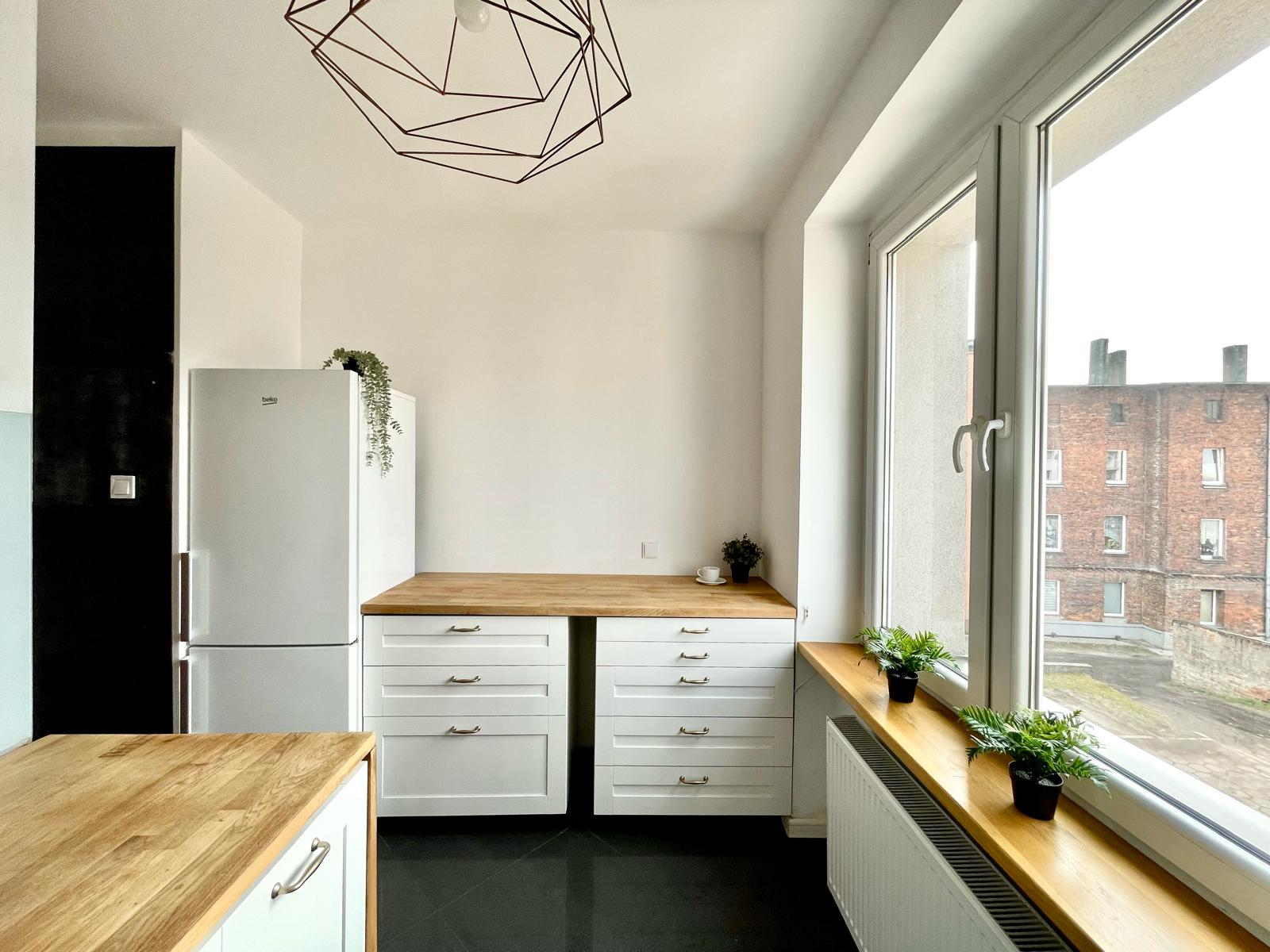 Mieszkanie przeszło generalny remont w 2017 roku. W mieszkaniu wykonano zabudowę na wymiar – funkcjonalną szafę w pokoju oraz meble kuchenne w zabudowie.
